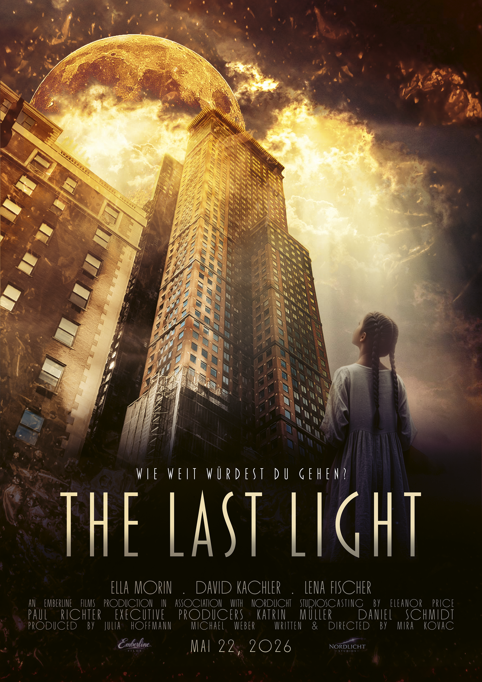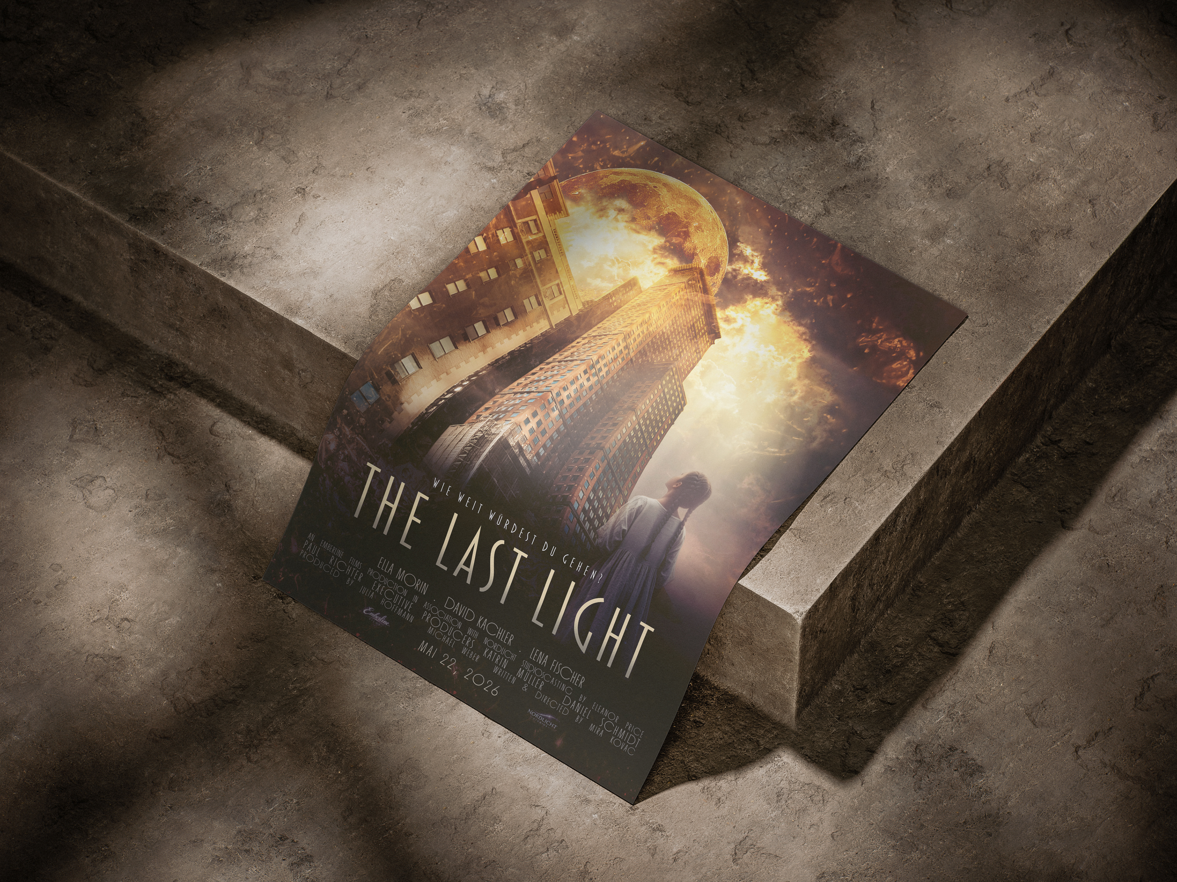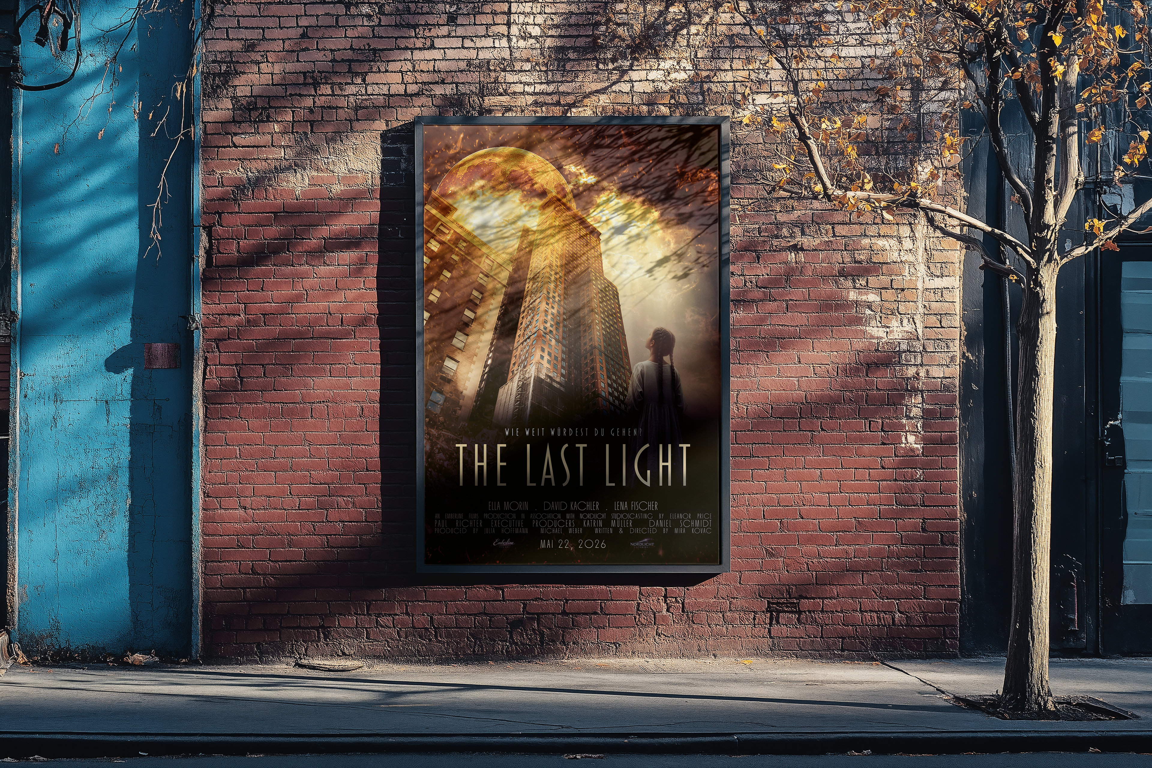 Das Filmplakat The Last Light entstand im Rahmen eines Schulprojekts im Modul Photoshop an der Schule für Gestaltung Bern Biel. Ziel der Aufgabe war es, ein stimmiges Fantasy-/Sci-Fi-Keyvisual zu entwickeln und dabei Compositing-Techniken, Lichtstimmung sowie eine klare typografische Hierarchie sichtbar einzusetzen. Neben der kreativen Bildidee standen ein nicht-destruktiver Workflow, saubere Maskierungen sowie eine drucktaugliche Umsetzung im Fokus. Das Projekt wurde sowohl für Print (A3, CMYK) als auch für Social-Media-Adaptionen konzipiert und beinhaltete zusätzlich ein Making-of zur Dokumentation der gestalterischen Entscheidungen.