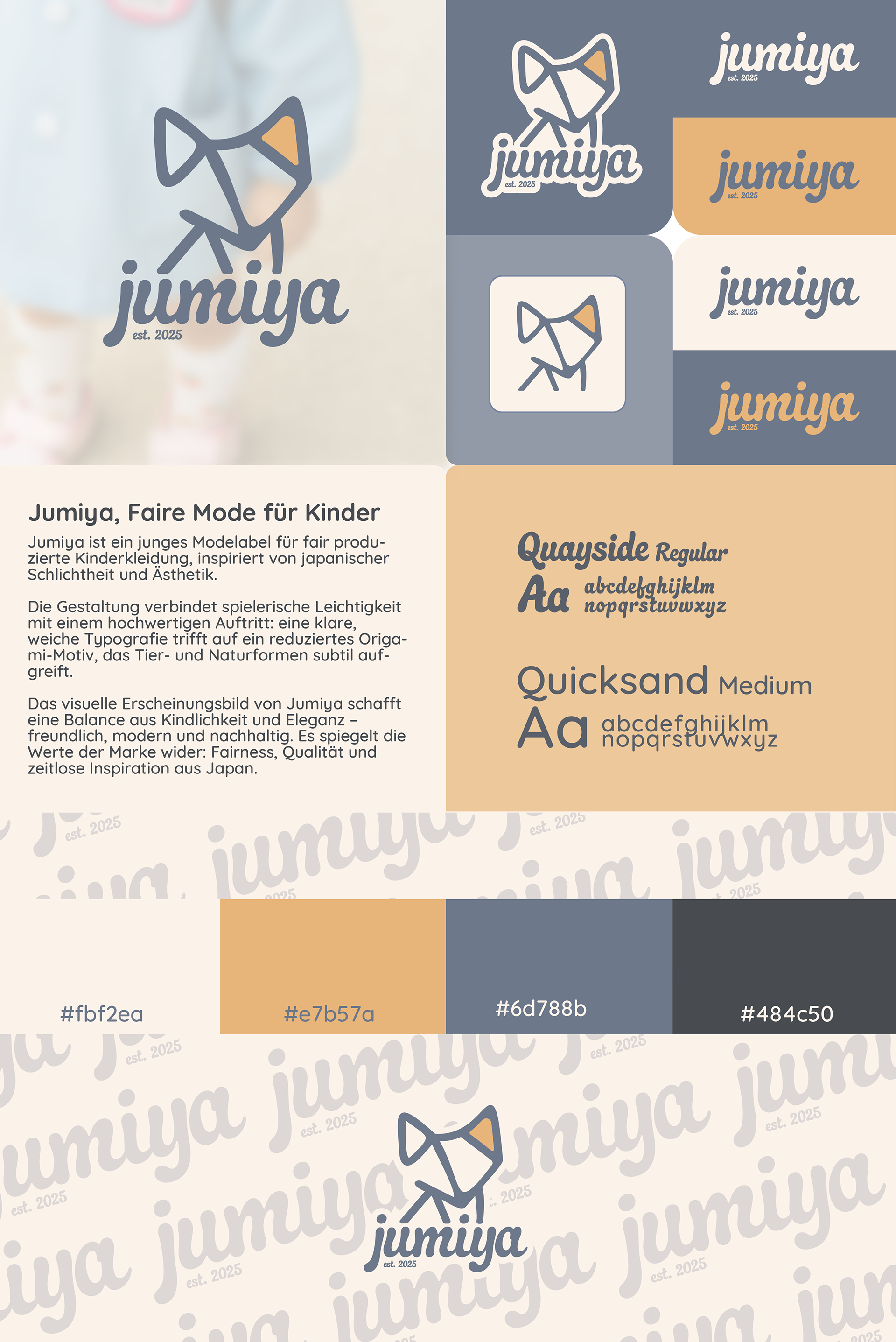 Jumiya ist ein fiktives Modelabel für fair produzierte Kinderkleidung, inspiriert von japanischer Schlichtheit.