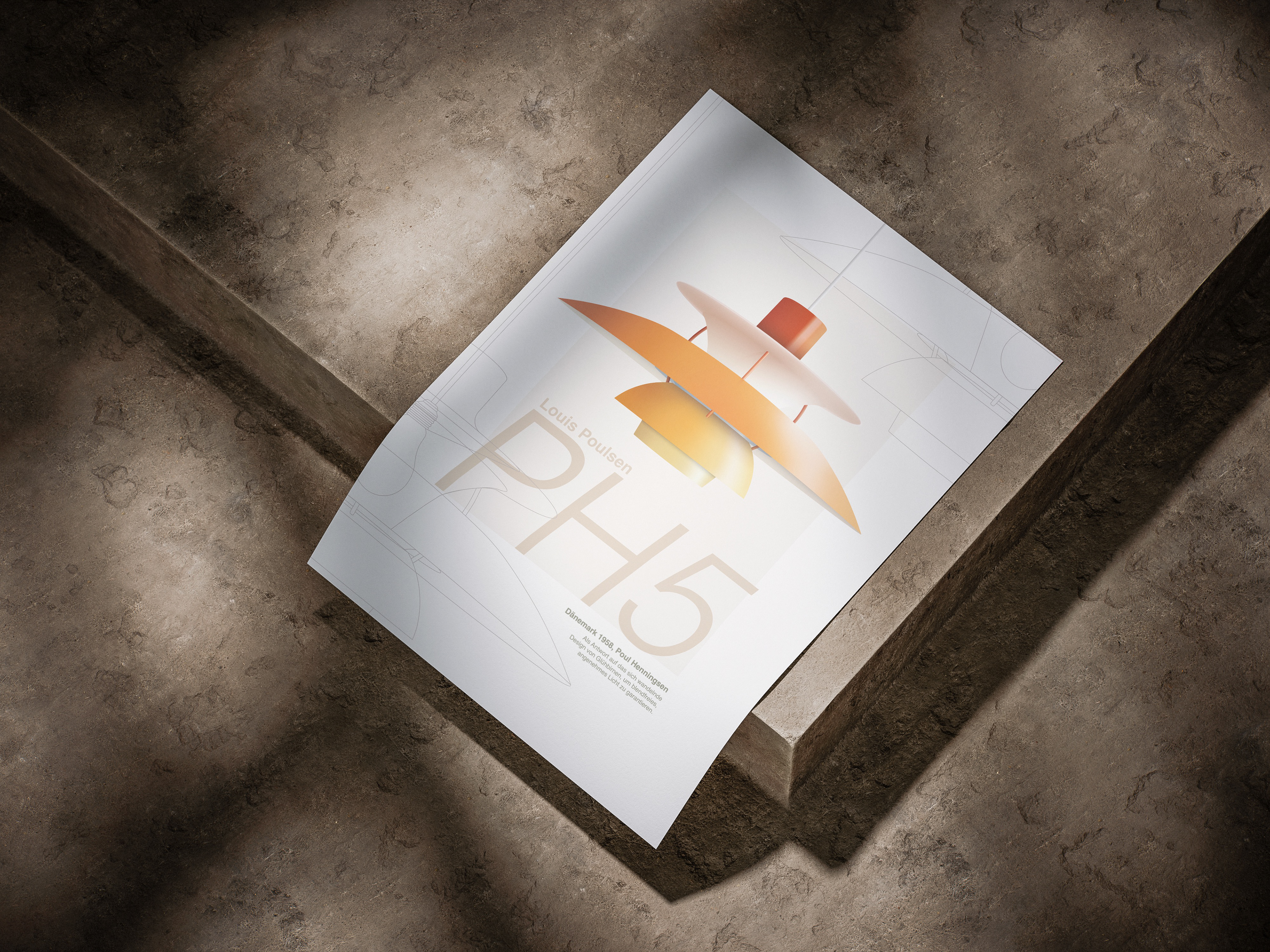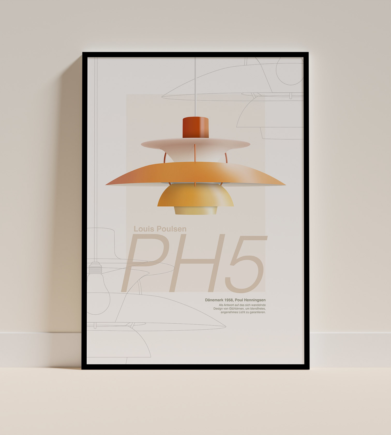 Das PH5-Plakat ist im Rahmen eines Designprojekts entstanden und setzt sich mit der visuellen Inszenierung eines ikonischen Produktdesigns auseinander. Ziel war es, die formale Klarheit und technische Präzision der Leuchte in eine reduzierte, plakatbasierte Bildsprache zu übersetzen.